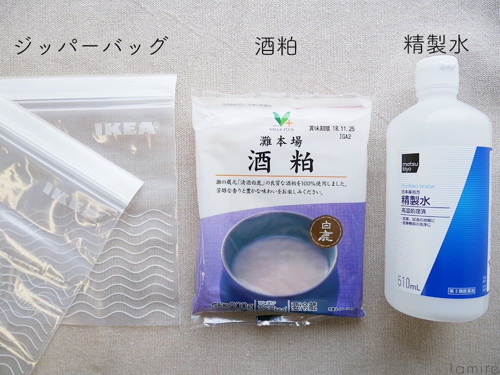 酒粕と精製水を加えたら、そのままジッパーバッグの中で混ぜ合わせて完成です!