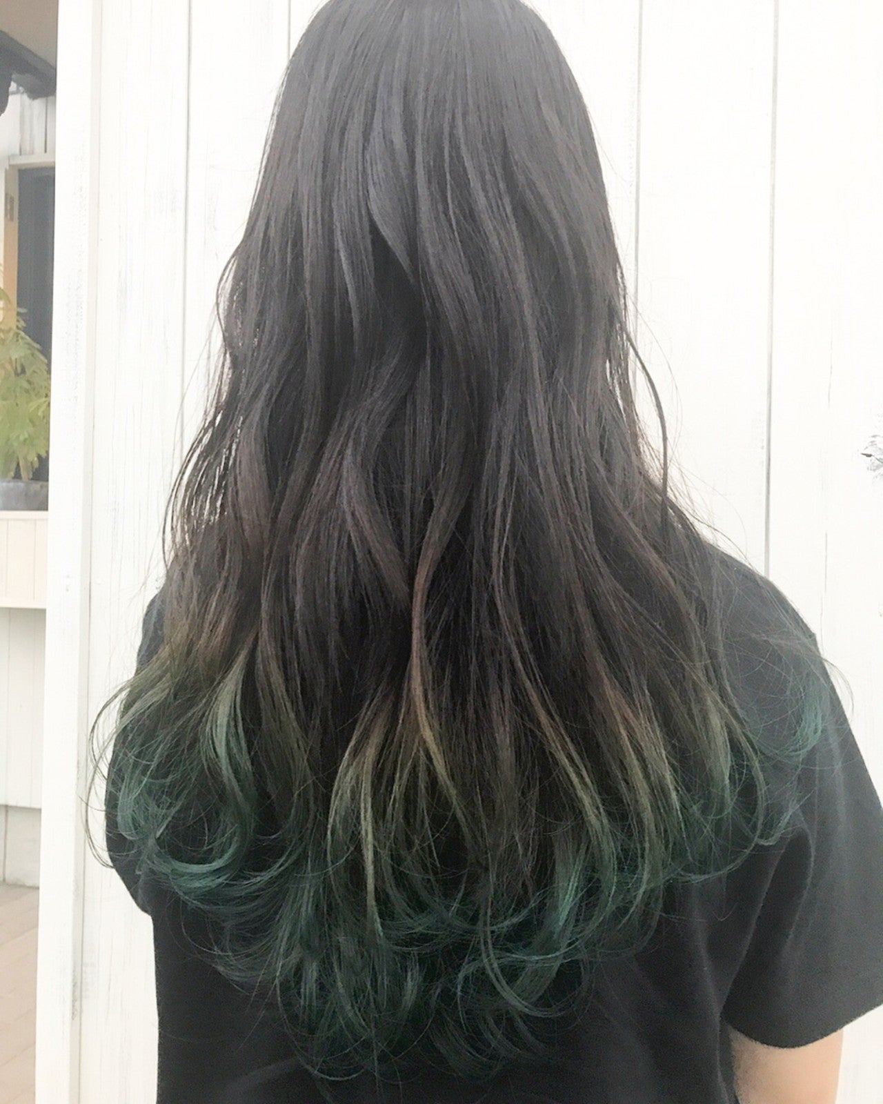 インナーカラーだったら、やってみたかったグリーン系もOK!オンとオフで使い分けができそう☆
