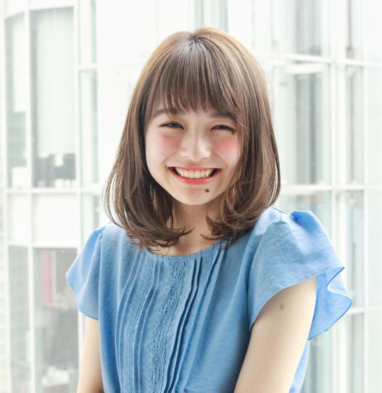 全体に毛先をふんわり丸くつくった、大人女性のためのストレート☆前髪を高い位置からつくって!
