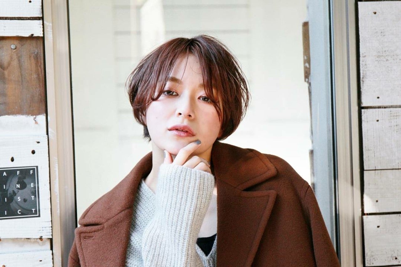 美シルエットのひし形をしたヘアスタイル☆前髪長めでショートも色っぽく仕上がります。