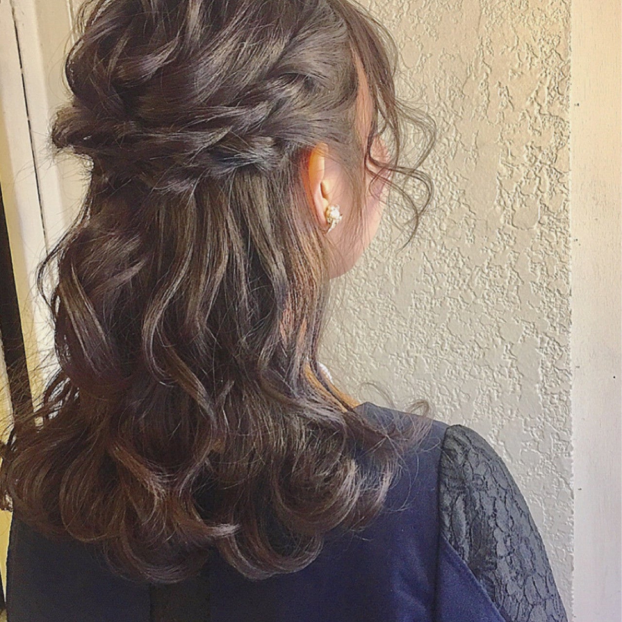 波ウェーブのハーフアップ。華やかなので結婚式や2次会などのパーティーシーンにおすすめですよ。