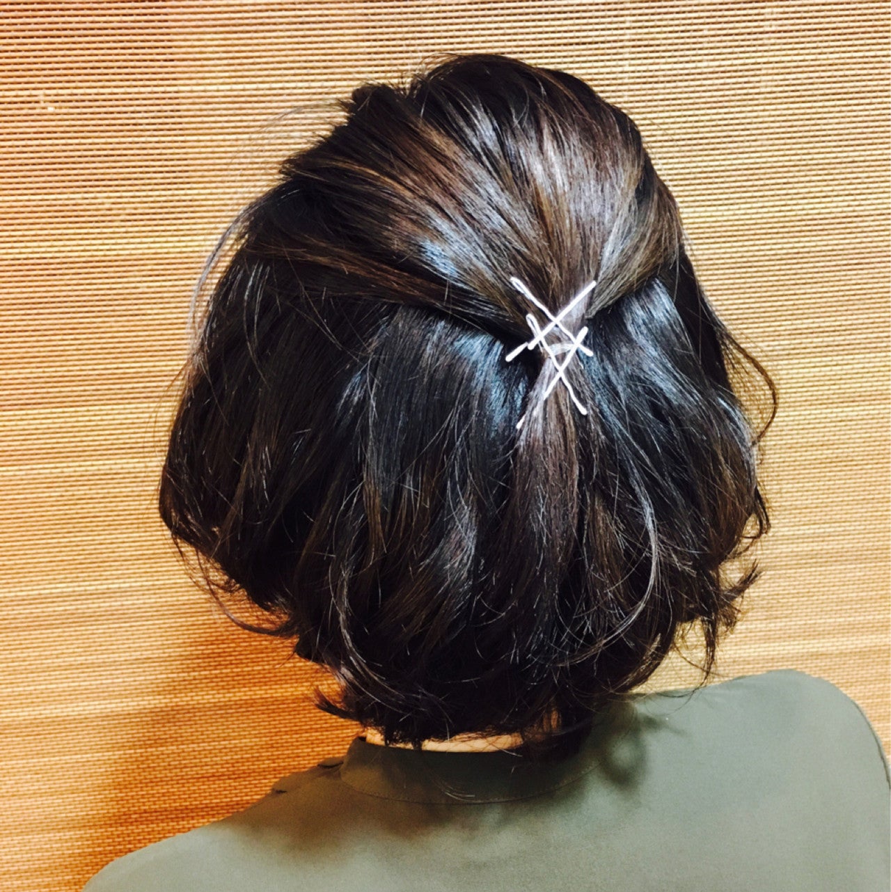 金ピンを使った簡単ハーフアップです。サイドとトップの髪の毛をねじって留めるだけなので、忙しいときでも簡単にできちゃいます。