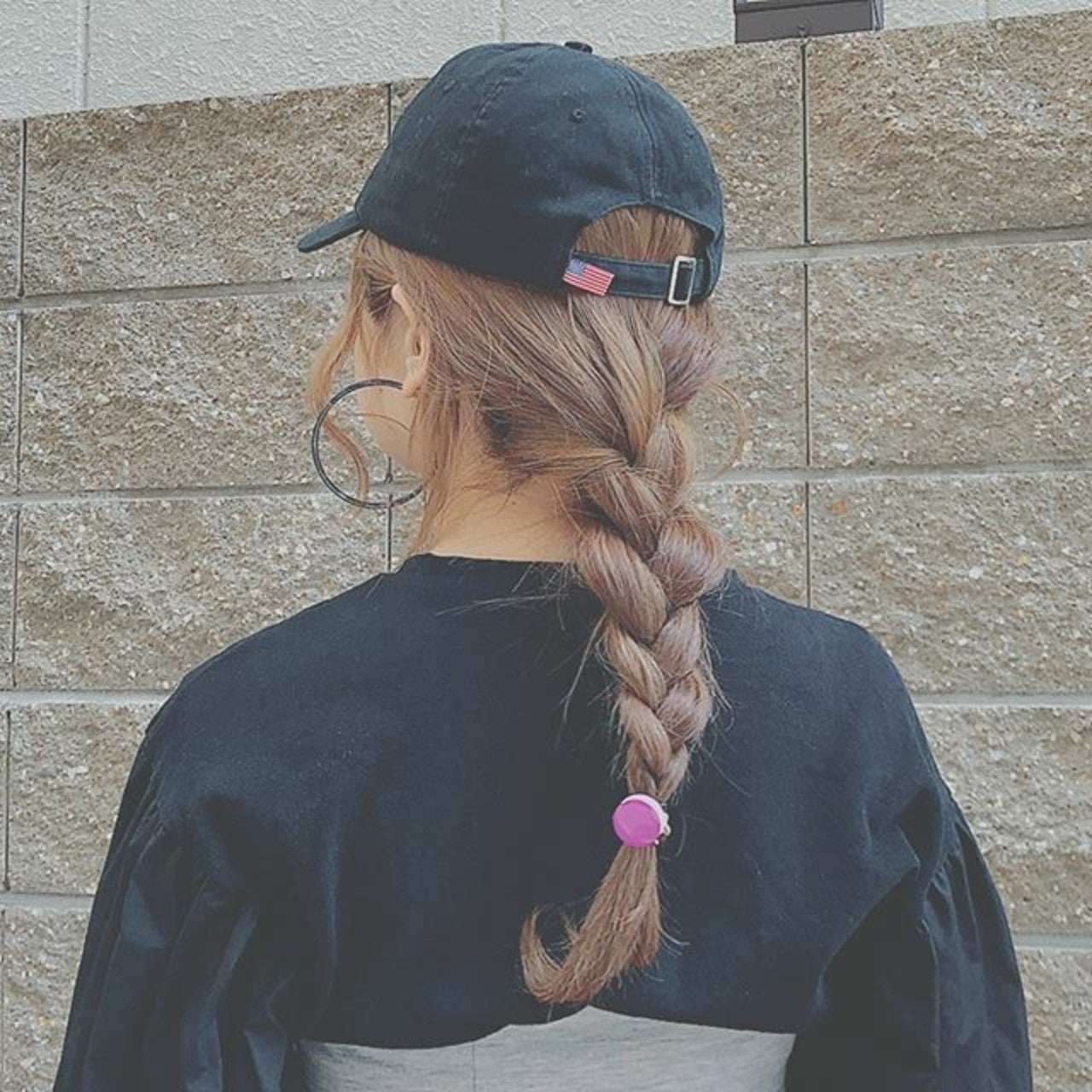 三つ編みをしてキャップをかぶればおしゃれ度UP!いつものアレンジにプラスしてみて♡