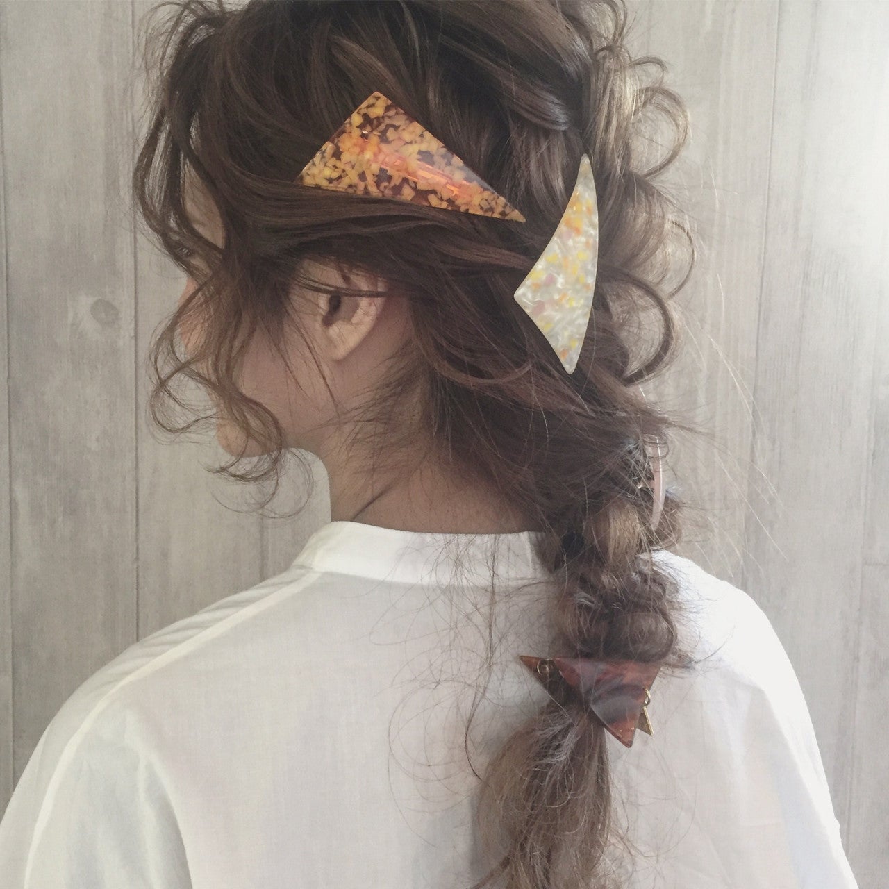 三角クリップは挟むだけで簡単に可愛く見えるからゲットしておきたいアイテム。ふたつ以上つけるのが今っぽ♡