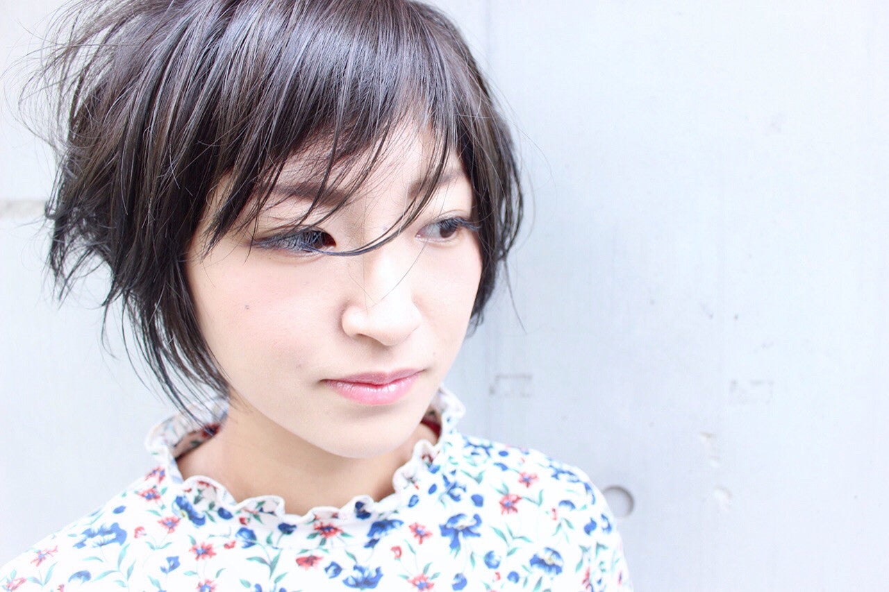 無造作な毛流れがクールな印象のショートヘア。分け目を変えれば、斜めに流した前髪が楽しめます♪
