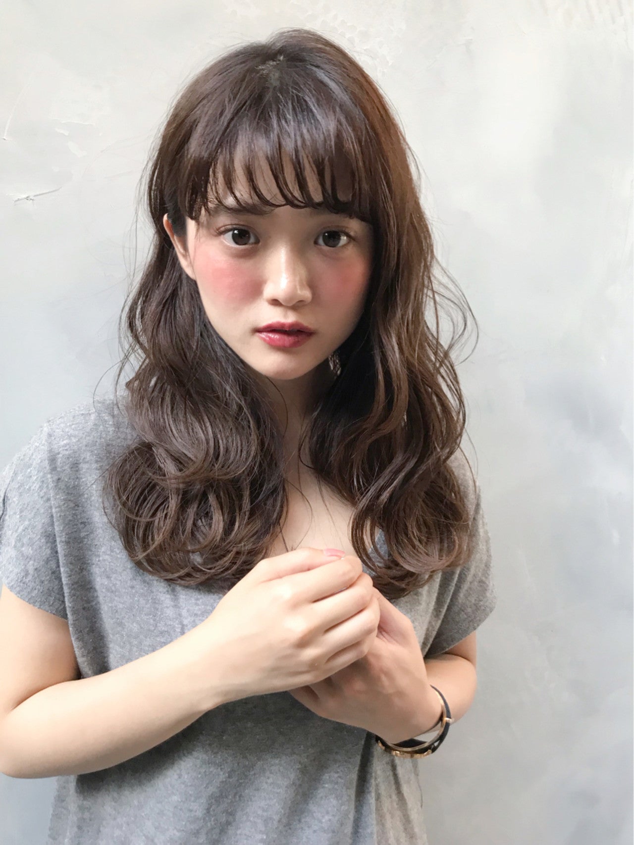 長めの髪と、束感のあるシースルーバングが女性らしく、お人形さんのようなかわいらしさを引き出してくれます♪