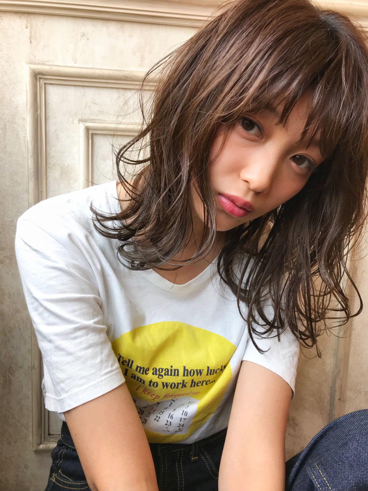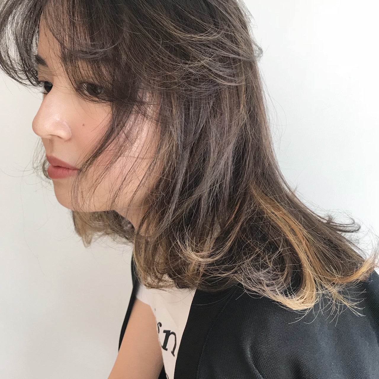切りっぱなし×ゆるふわミディアムロング