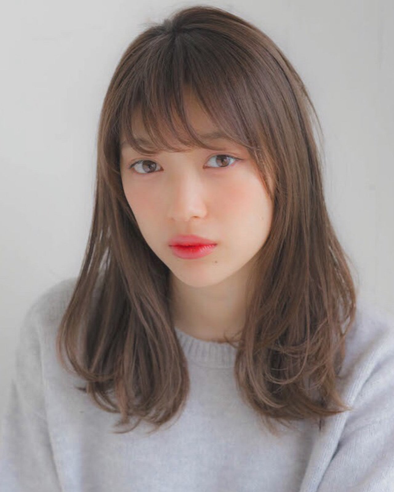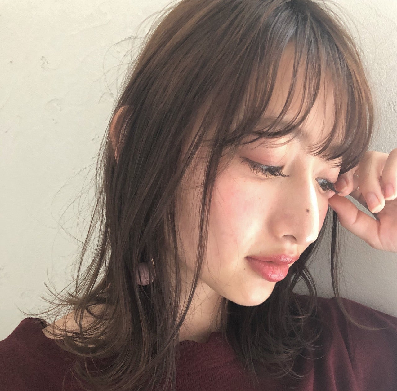セミロングの長さに合わせて、前髪は短めに仕上げるのが今季の旬ヘア♪オン眉にするのも◎。