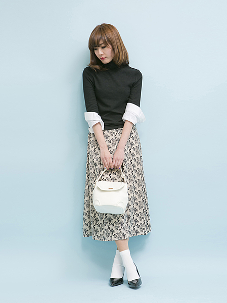 そんなこなれ感たっぷりのレトロを黒花柄で。