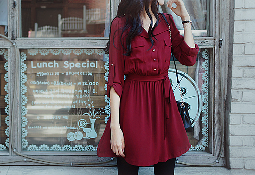 ダークグレーのワンピースは