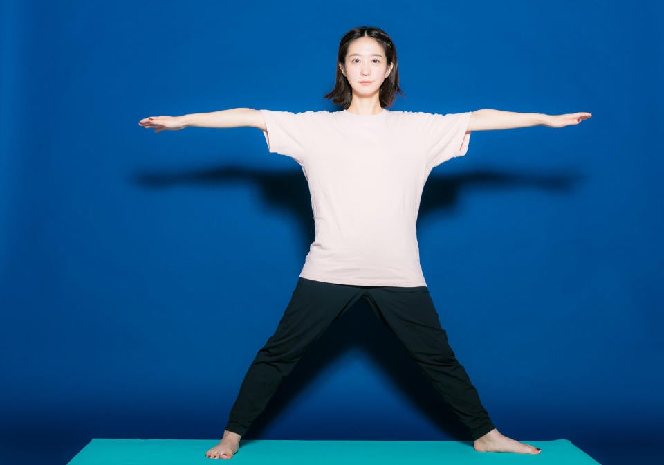 整ったら、両手を左右に伸ばし、肩の力を抜く