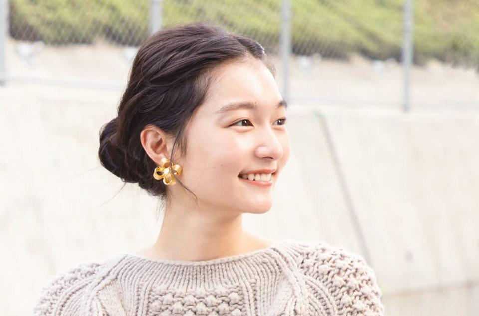 ボリュームがあるニットやスウェットには、まとめ髪が1番!
