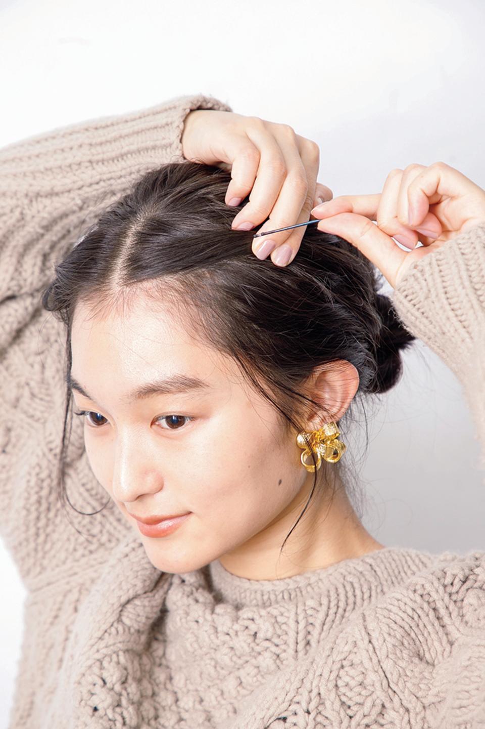 サイドの髪をピンで留め、スッキリさせれば完成!