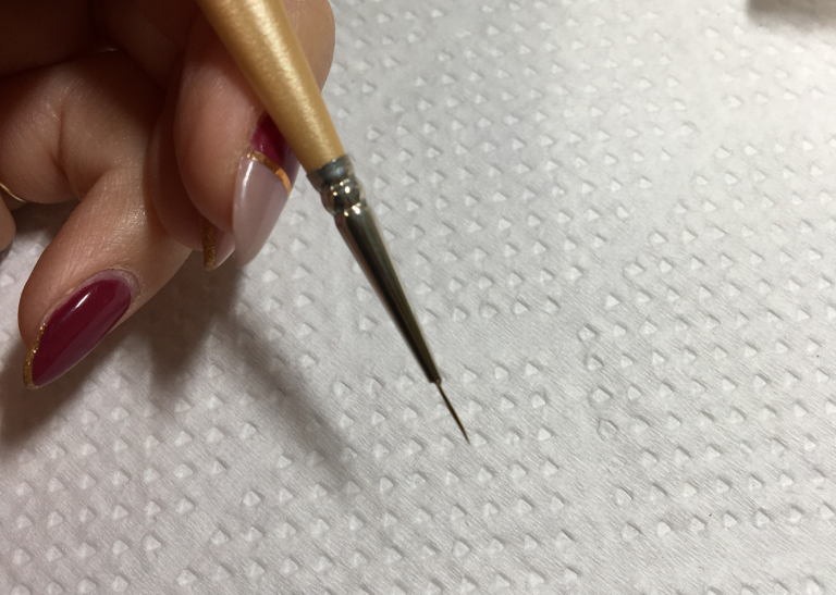 5. フレンチは上品なイメージなのでラメラインは細めに引くのがオススメ♪今回は極細ライナー筆を使用しました。