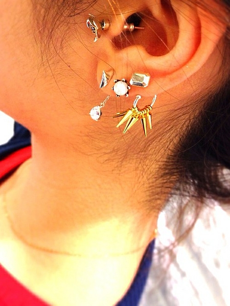 最近では耳にピアスという