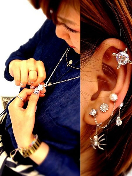 イヤリングやイヤーカフなどで