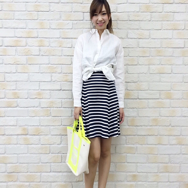 サラリと着るとカジュアルなボーダーフレアワンピ。