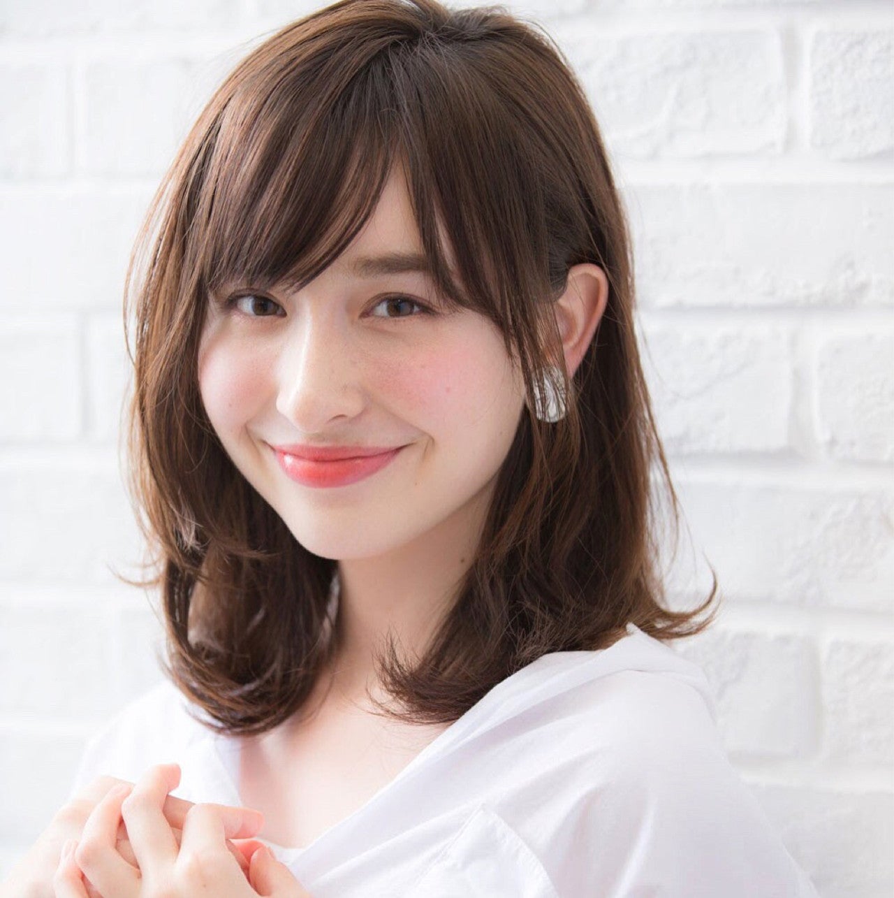 おでこを隠す右分けの前髪はアイドルもしているかわいい印象になれるモテ前髪です。
