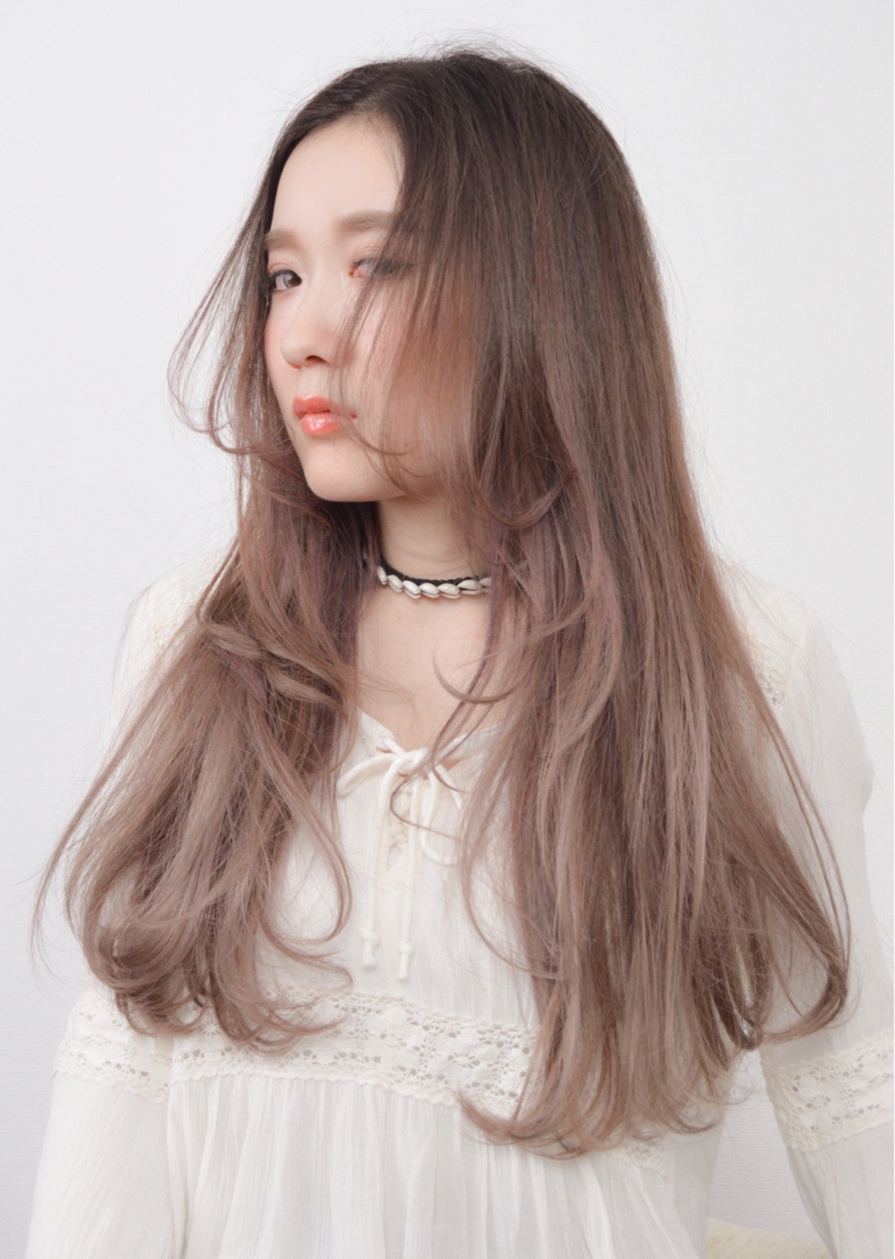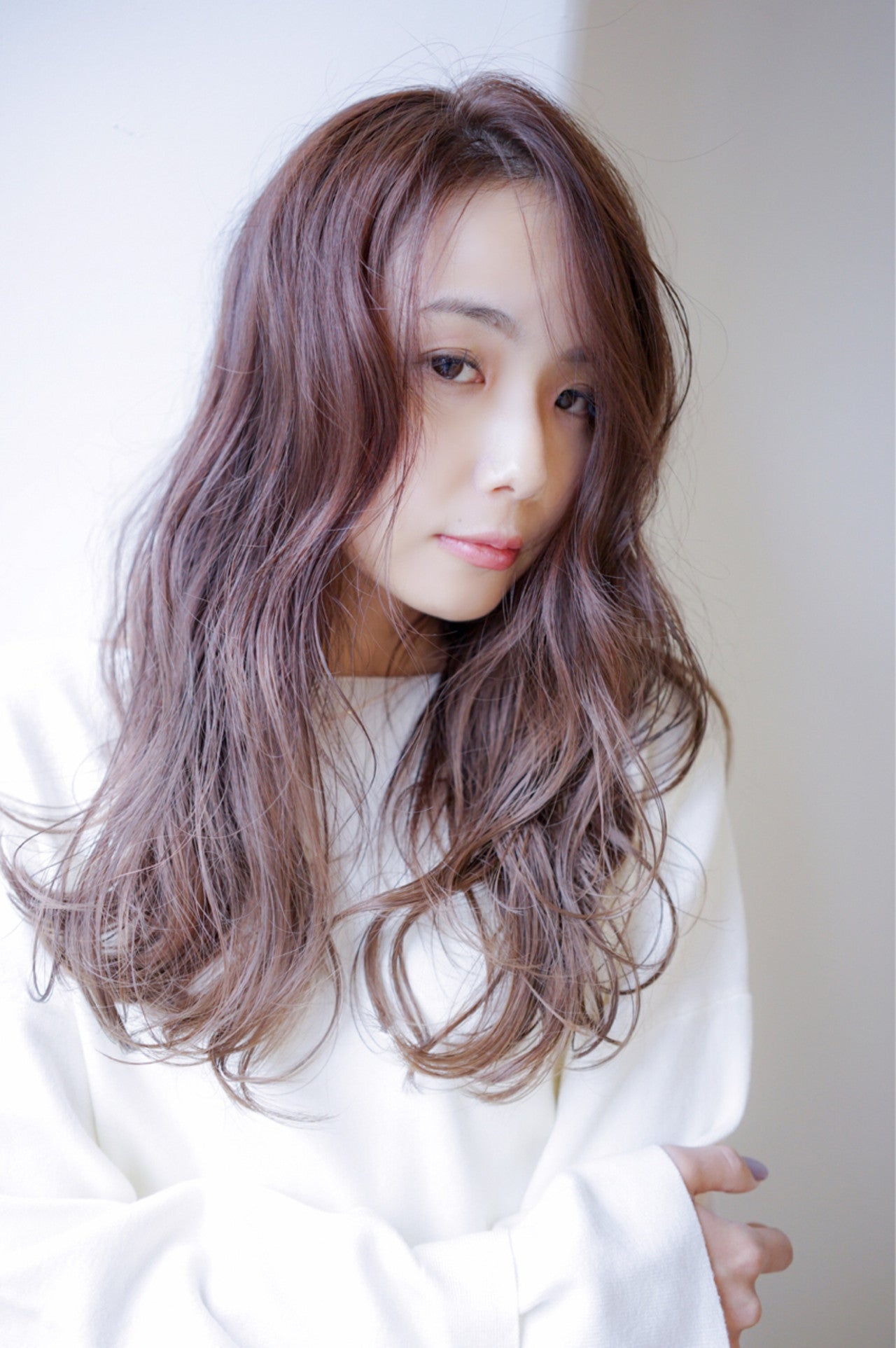 透明感溢れるピンクラベンダーのロングヘアです。こなれ感とニュアンスのある重軽ヘアに仕上がります。
