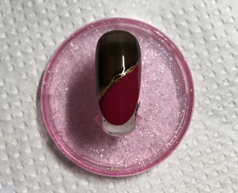 2. 次に、2色の境目にラメラインを引いていきます。写真では分かりにくいですが、フニャフニャしたラインを2本交わるように描きました!