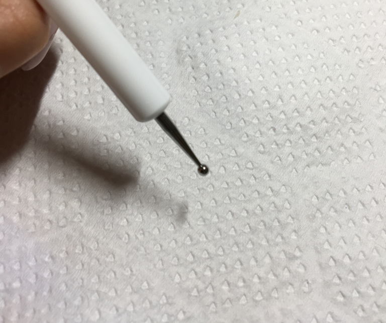 先端にジェルをつけて、点を打つだけで、綺麗なドットが書ける優れもの。