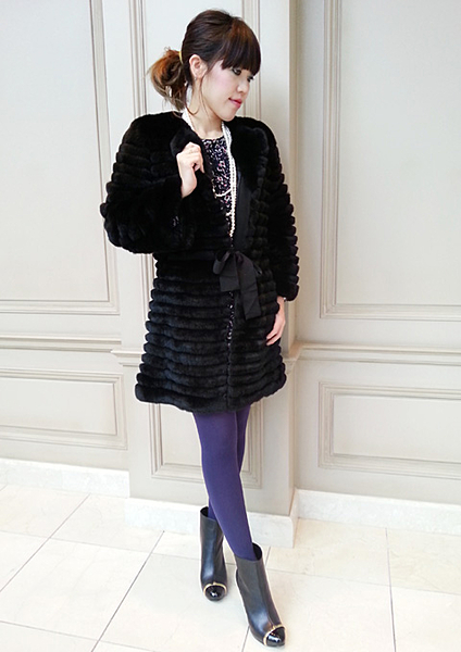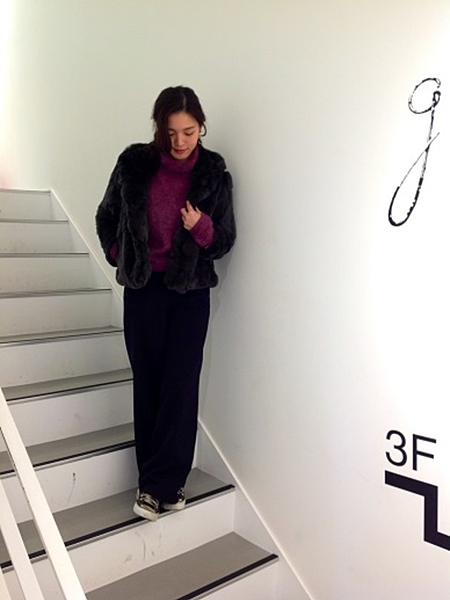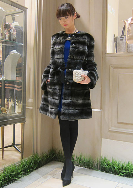 滑らかな触り心地のファーコートはメンズウケも最高*
