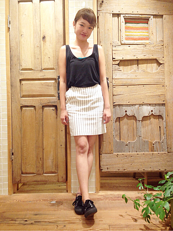 夏の定番柄、ボーダーのタンクトップ。