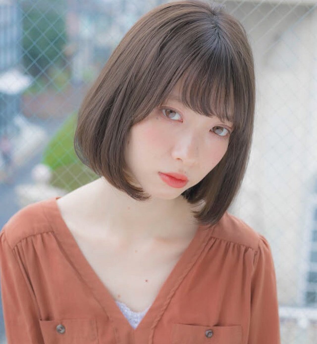 品のある大人可愛いボブスタイルです。シースルーバングに柔らかさと透明感のあるカラーなので、デートににぴったりです。