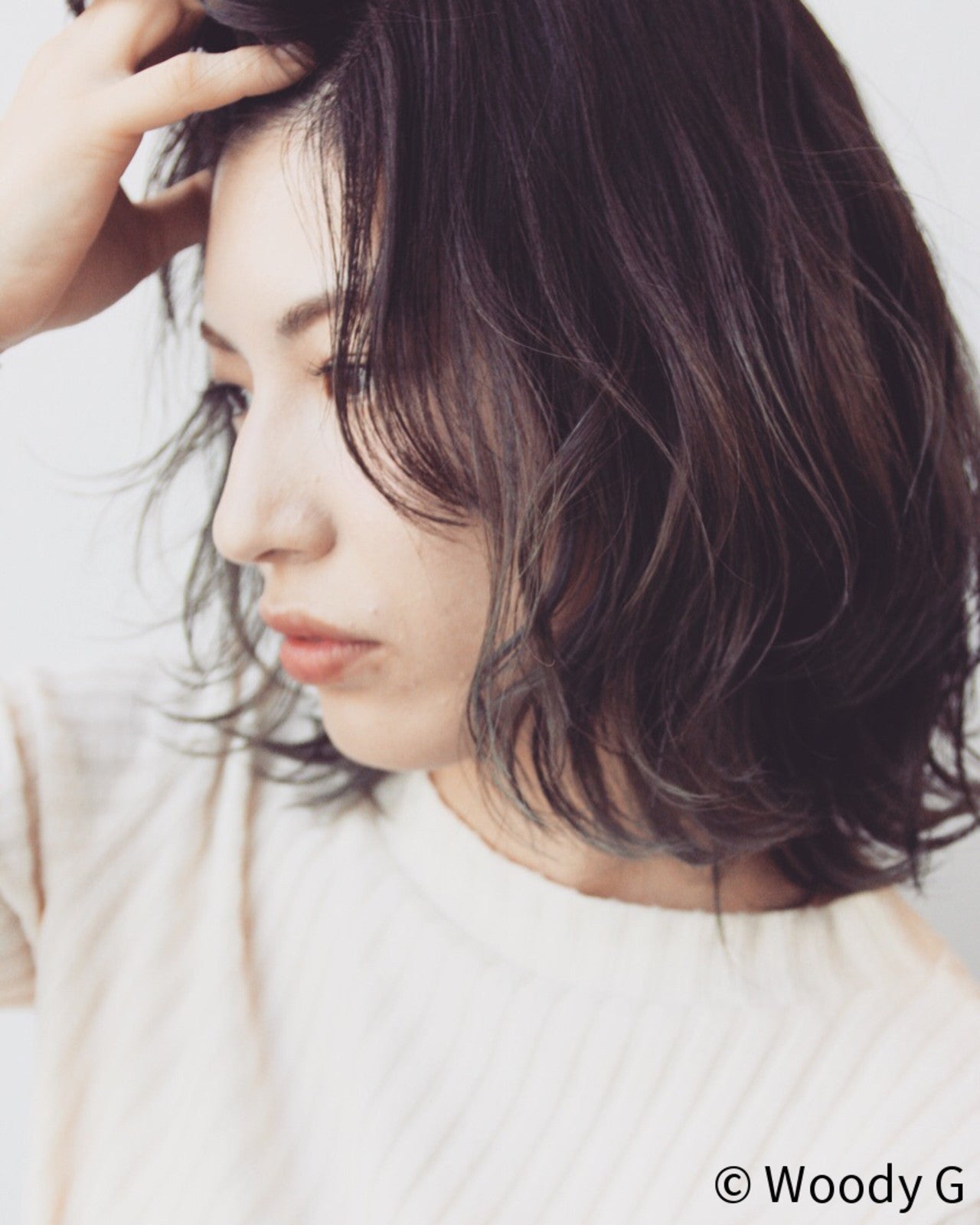 セミウェットな大人可愛いボブスタイルにふんわり揺れるシースルーバングを組み合わせています。