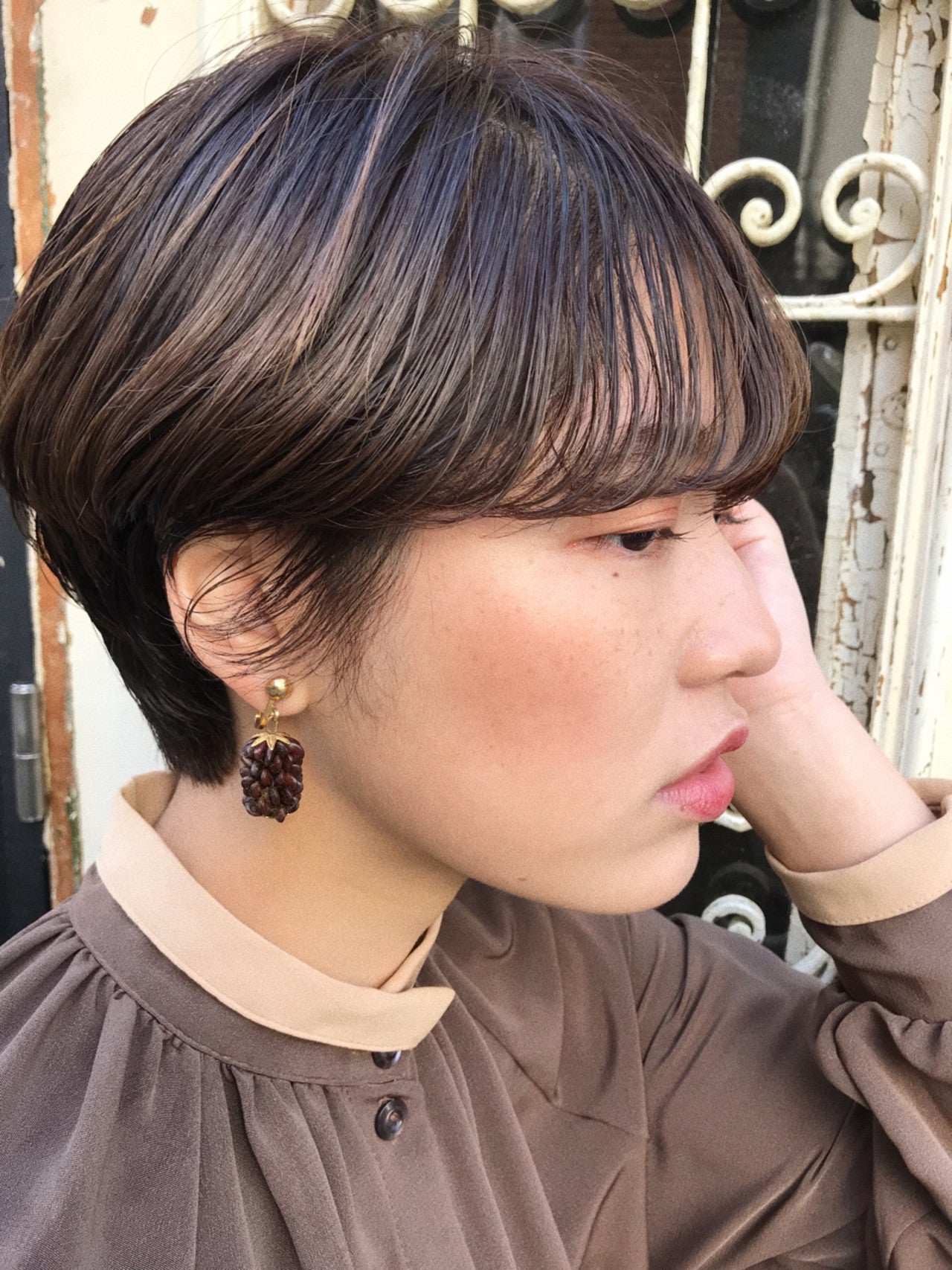 トップをふわっと少し立ち上げて。全体的に柔らかい雰囲気のマッシューショートに仕上がります。