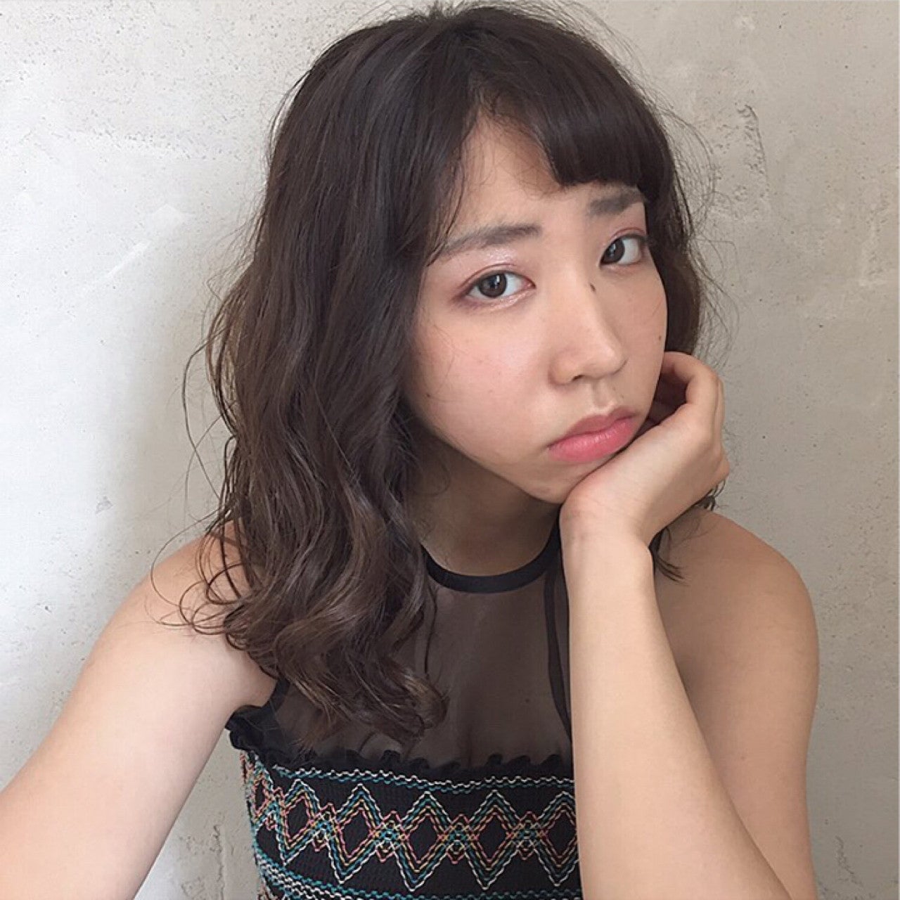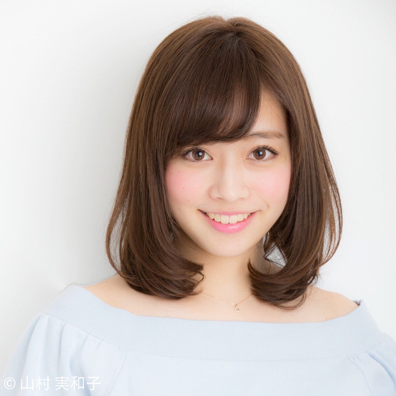 ミディアムヘアの毛先を丁寧にワンカールしています。髪の美しさが際立つスタイルです。前髪もカールさせるのを忘れないで下さいね。