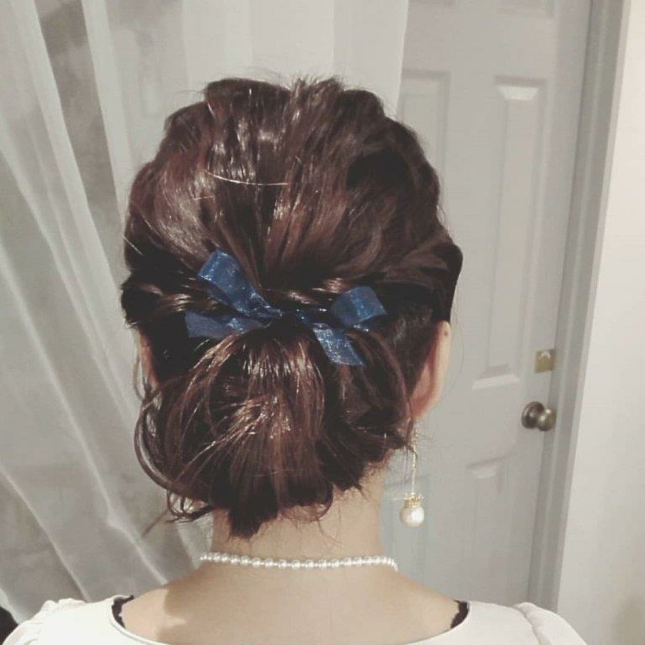 ルーズなゆるふわお団子アレンジです。ヘアアクセサリー次第で雰囲気が大きく変わります♡