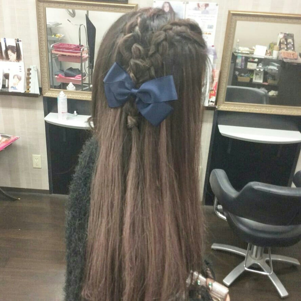 編み込みハーフアップ×バレッタヘア