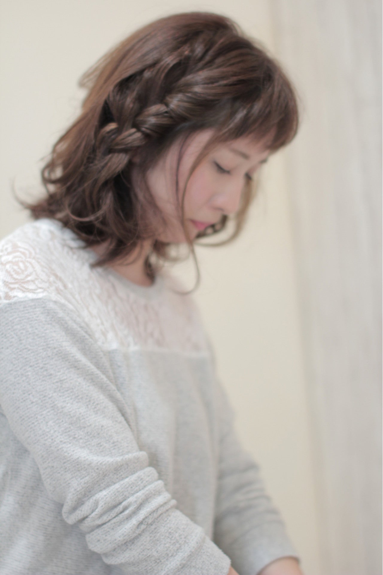 耳の上から反対側の耳にかけてつくる編み込みです。カチューシャのようなアクセントになります。