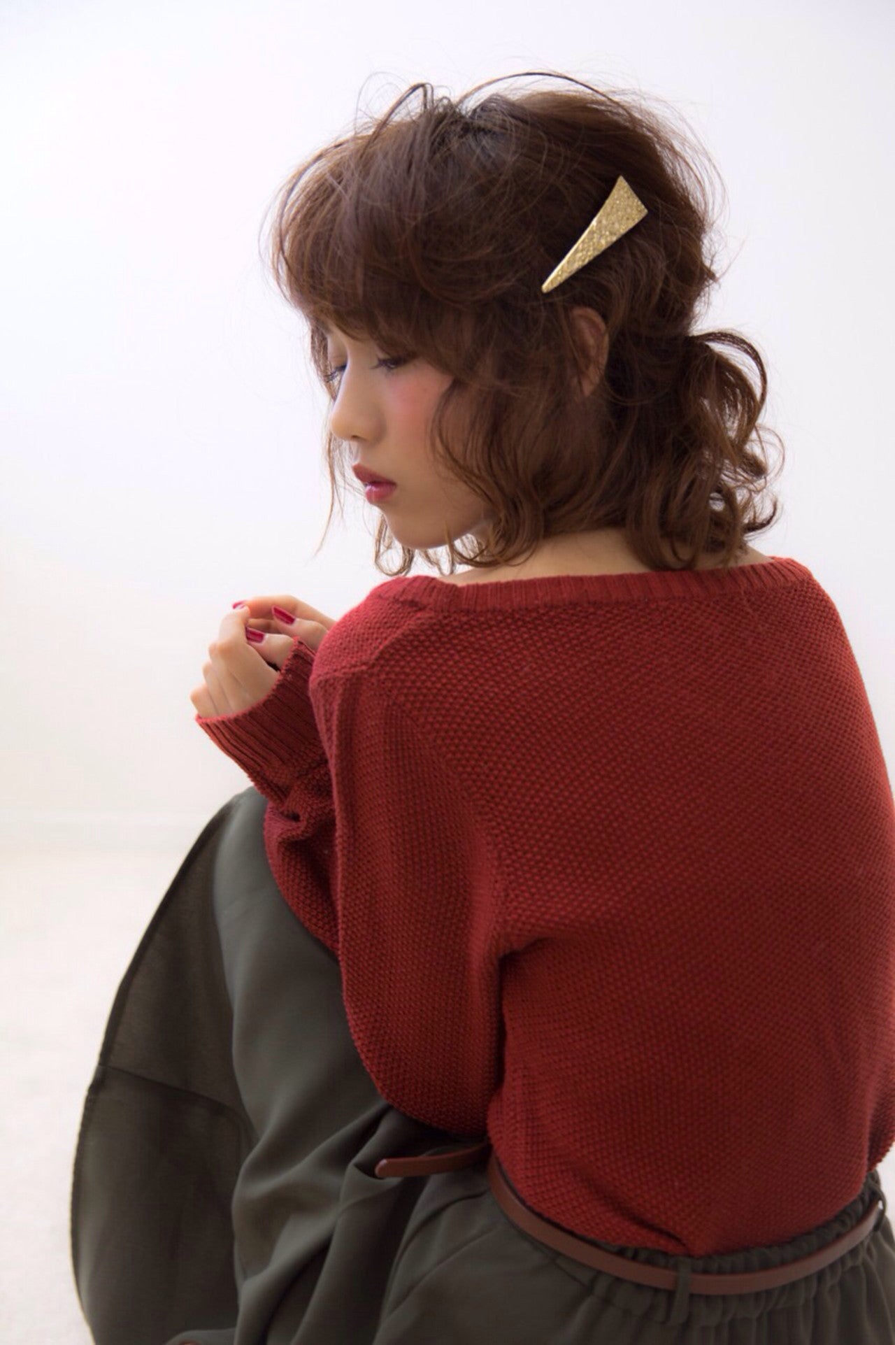 塗れた様な質感が切なく色っぽい印象を与えるスタイリング。