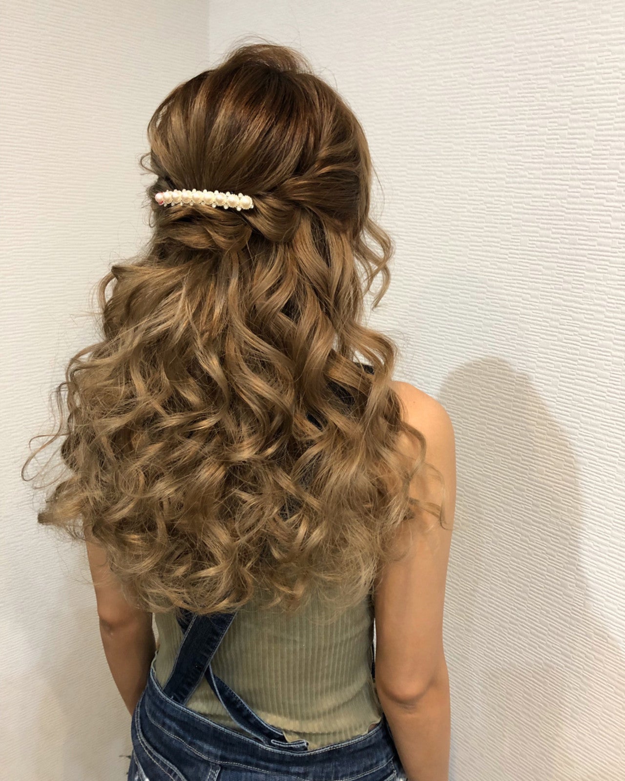 華やかなロングヘアにフェミニンなねじりのハーフアップを組み合わせています。パーティーシーンにもおすすめですよ。