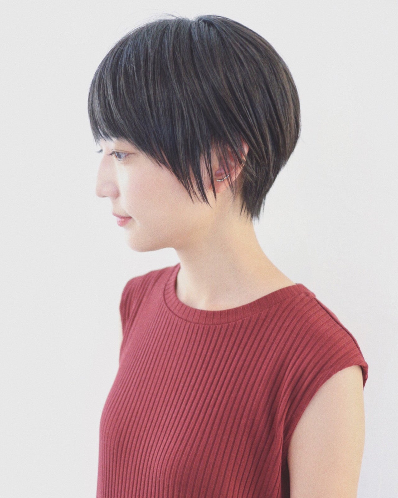 うなじが美しく映えるショートのストレートヘアです。上品で清楚な雰囲気も演出できますよ。
