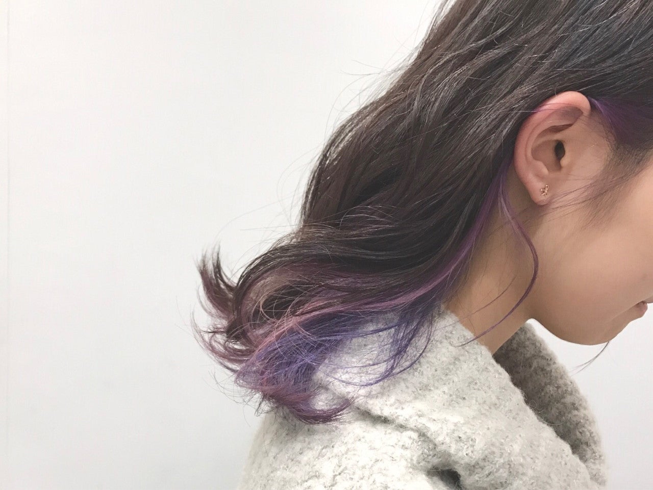 ハイトーンのインナーラベンダーカラーでどぎつさのないさりげないおしゃれヘアに。