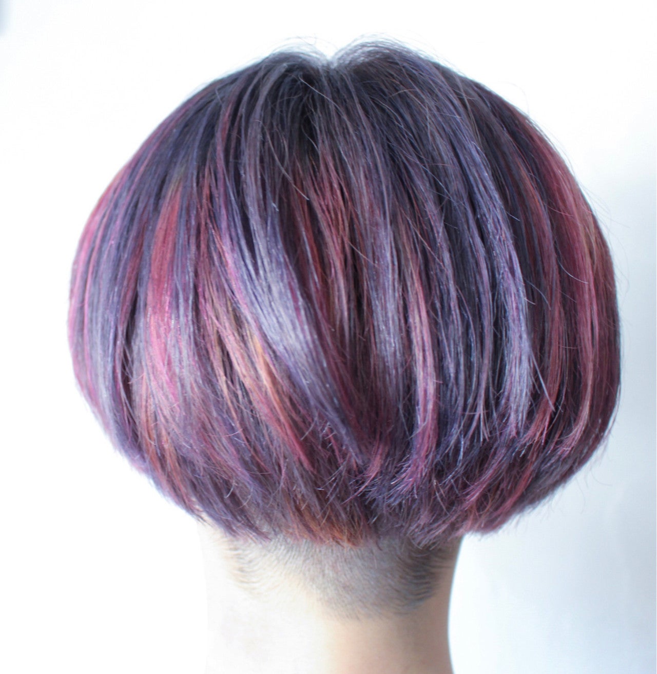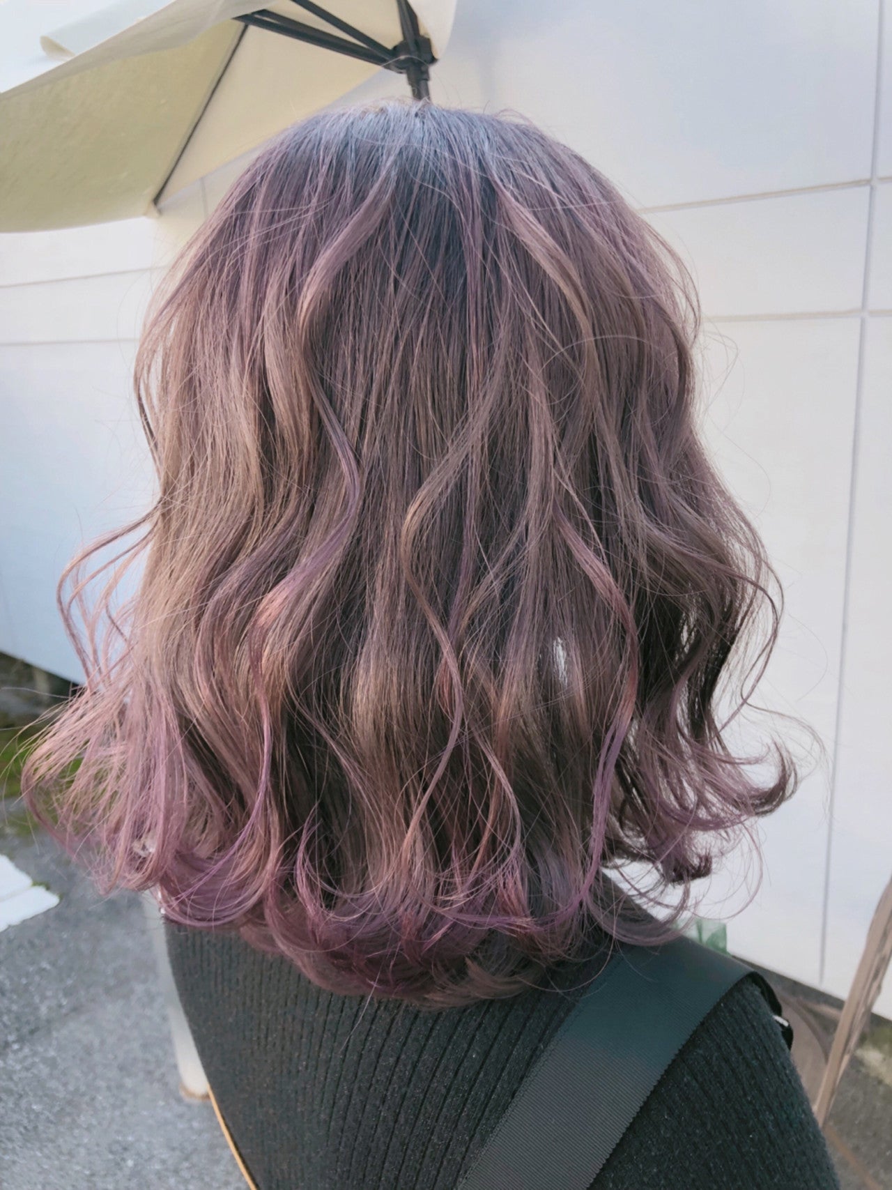 ラベンダー系カラーで統一した複数カラーで染めると個性的な仕上がりになるので挑戦してみて♡
