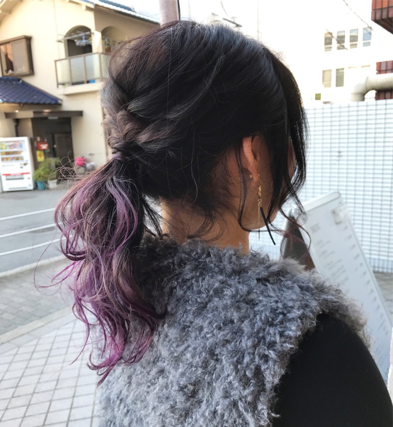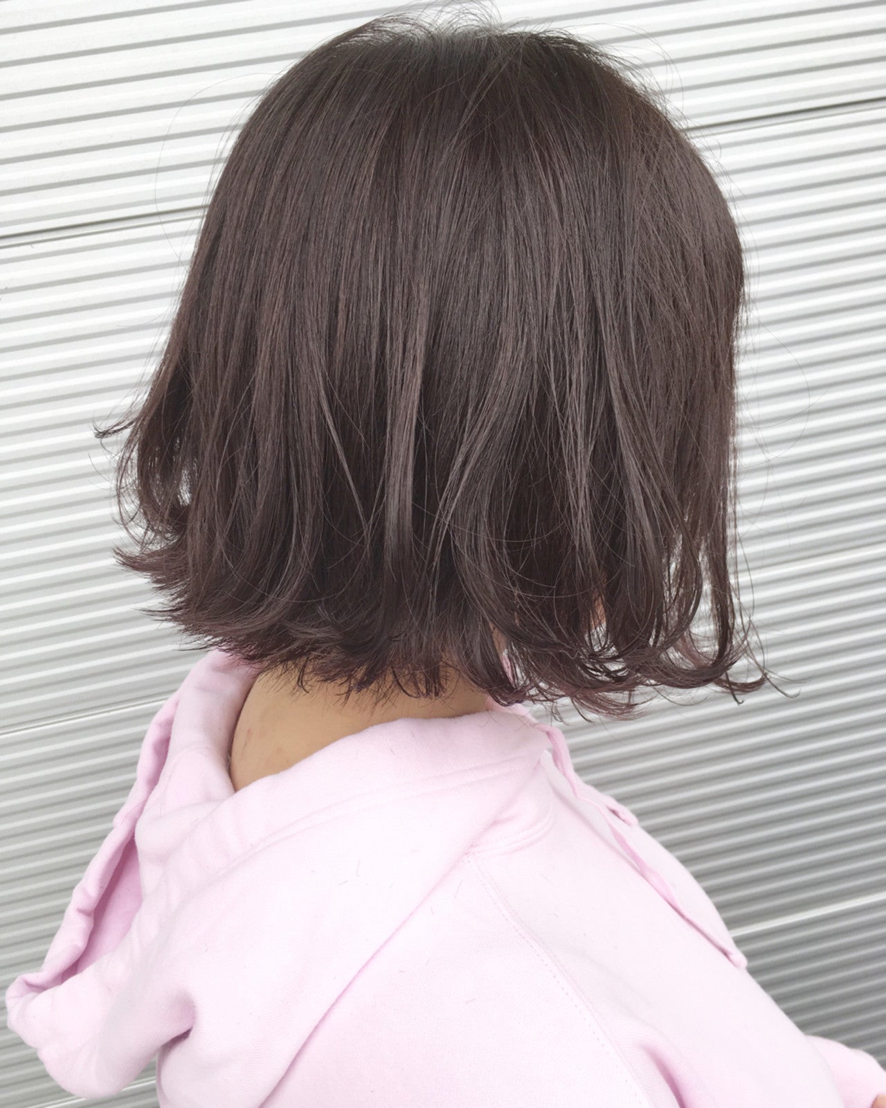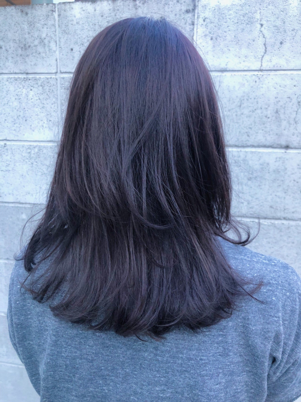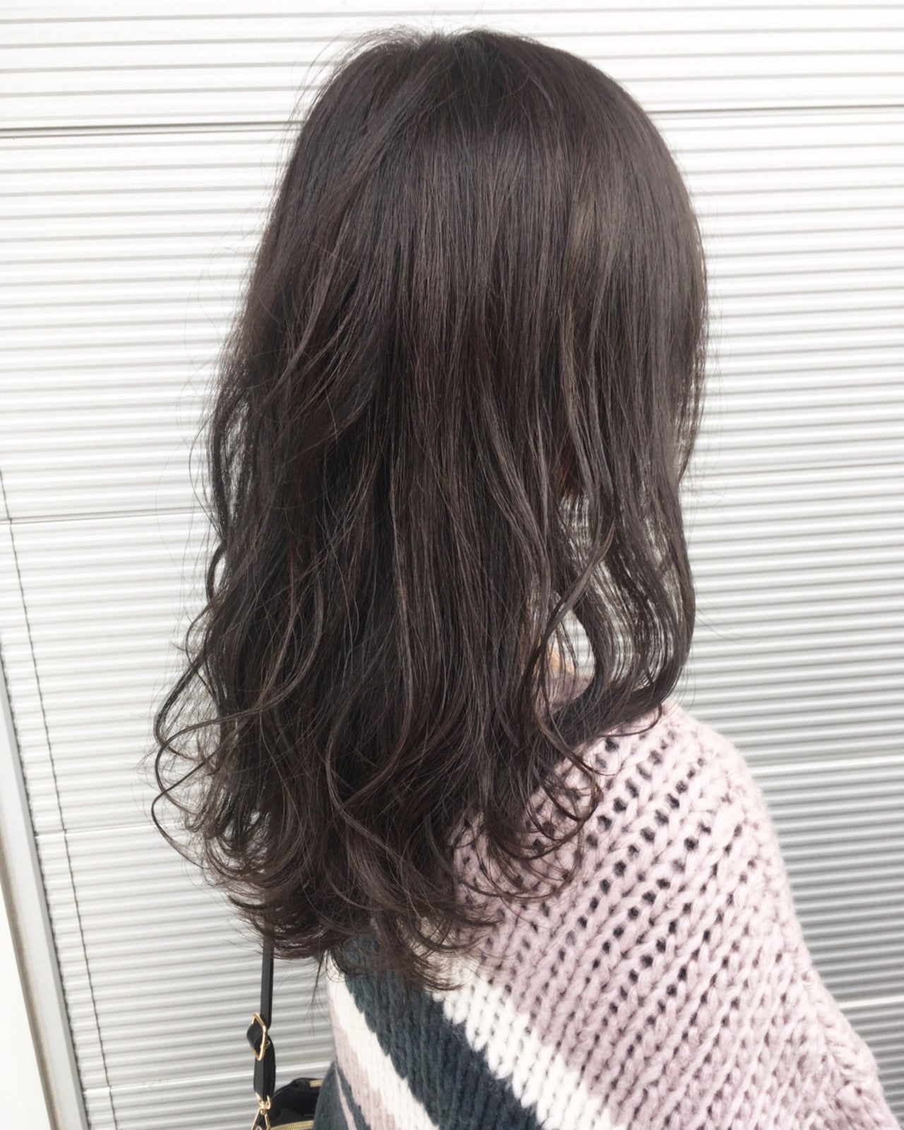 黒髪に入れるとラベンダーの色のでは少ないものの、ツヤ感のあるこなれヘアになります。