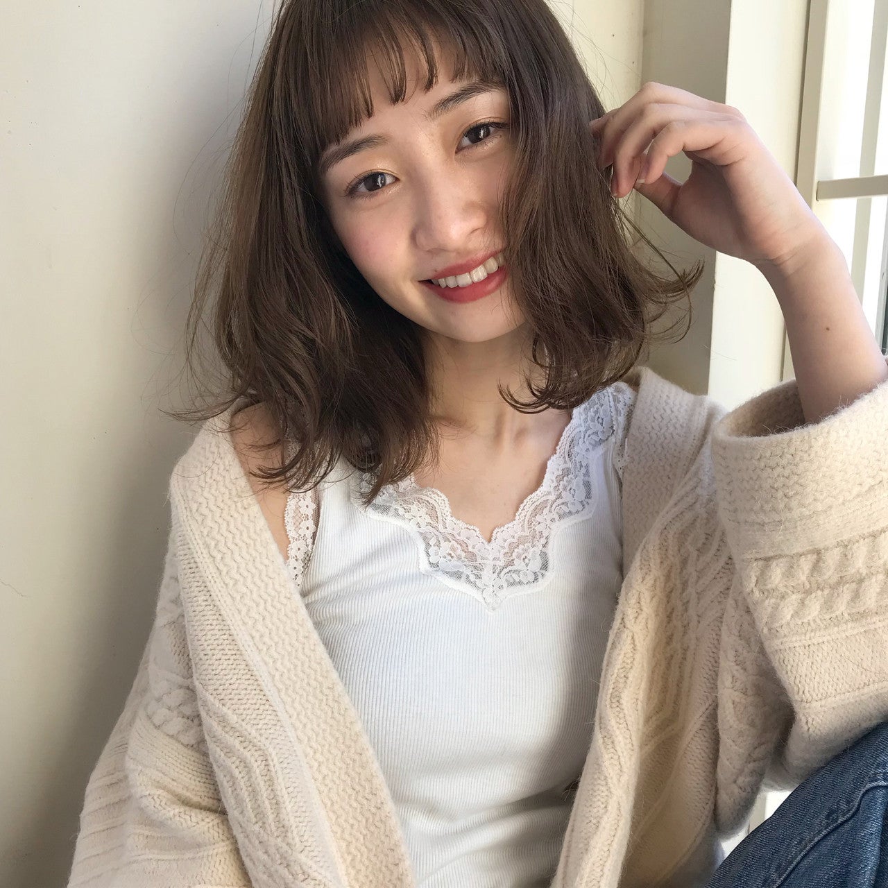 シースルーバングとアンニュイなほの揺れヘアとの相性が抜群ですよ。
