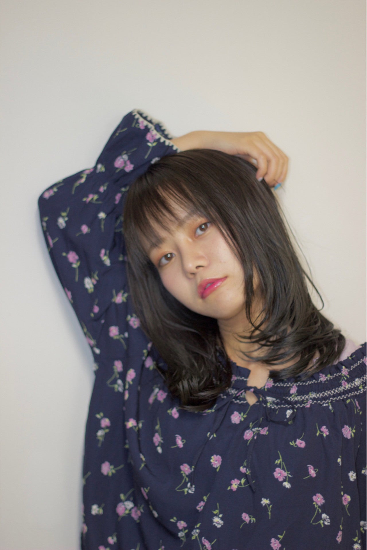 ナチュラルなボブスタイルに透明感のあるネイビーカラーを組み合わせています。