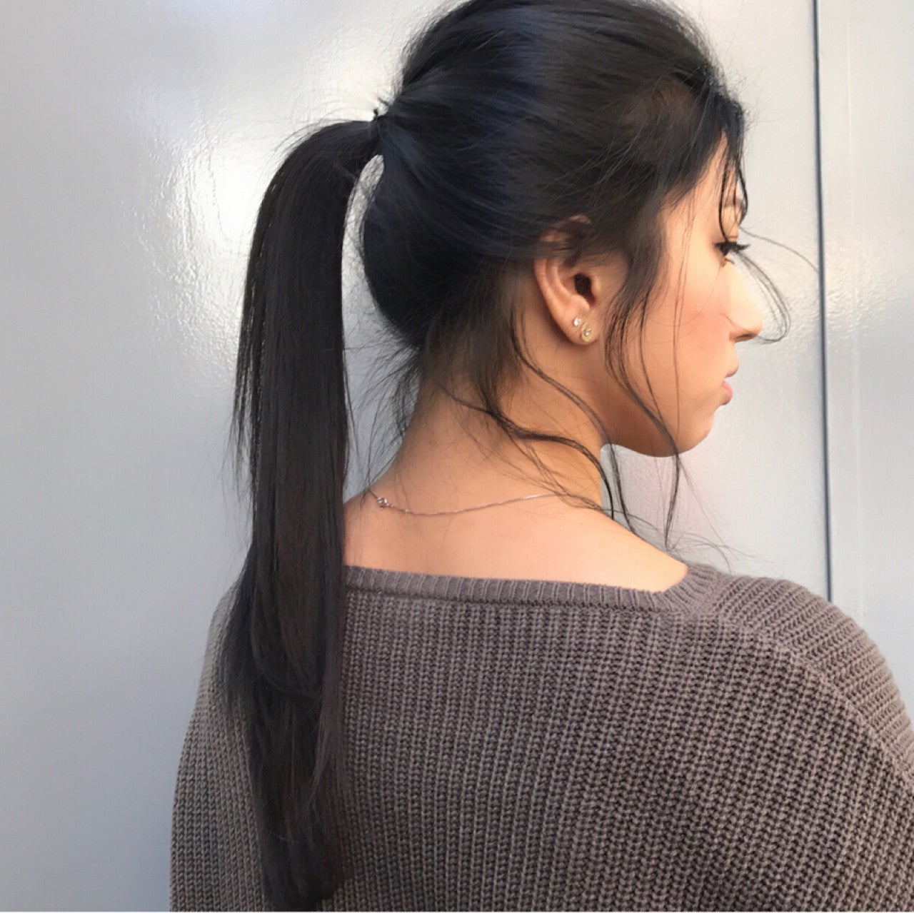 ポニーも低めが大人っぽさのポイントです。まとまりのある落ち着いた印象を演出してくれ、上品さと色っぽさも加わりますよ♪