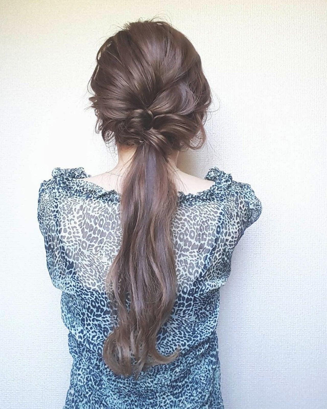 品の良い落ち着いたローポニーのアレンジです。シンプルなので自然な感じの色っぽさを演出できますよ。