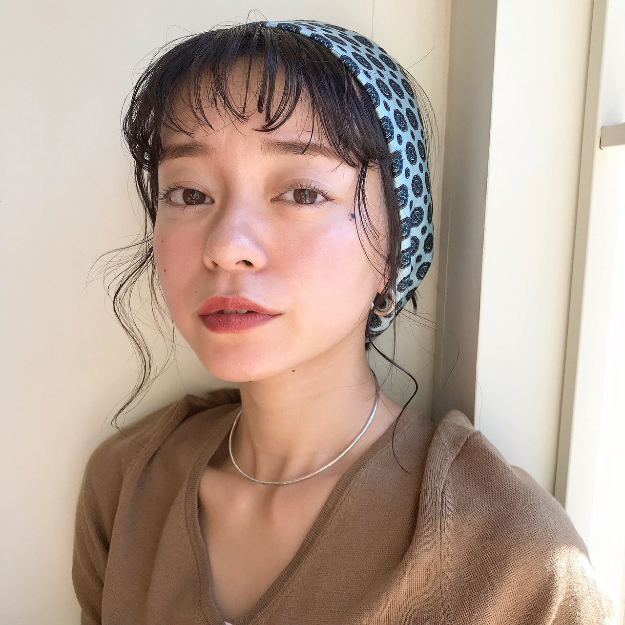 スカーフを巻くときは、前髪やサイドの後れ毛の引き出し具合が大きなポイントになります。