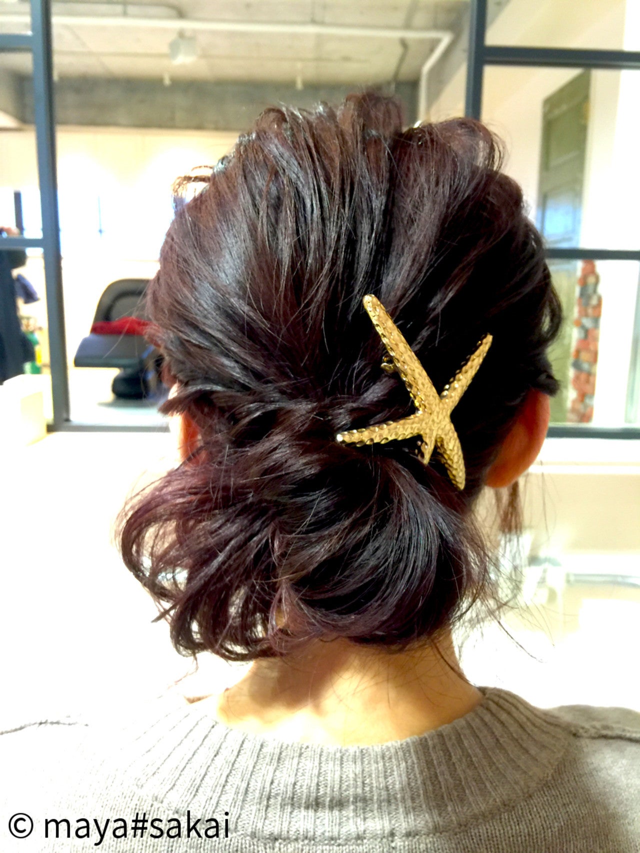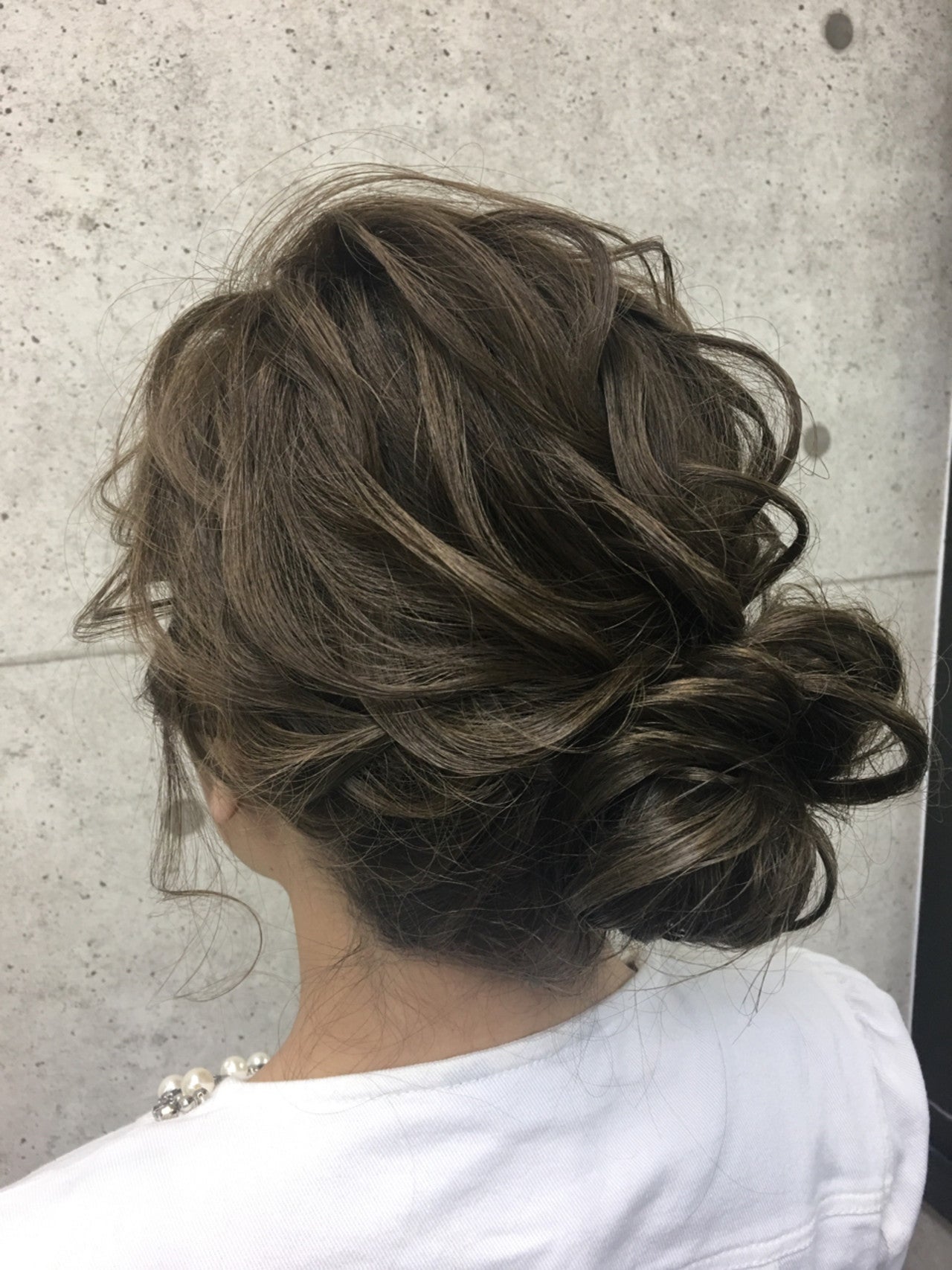 ロングヘアでつくるふんわりエレガントなアップスタイルです。毛の引き出し方次第でこなれ具合が変わってきますよ。