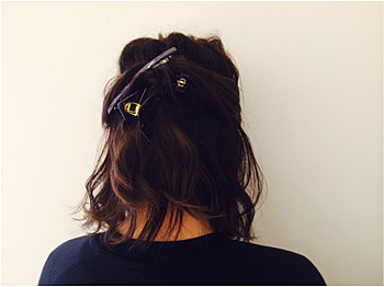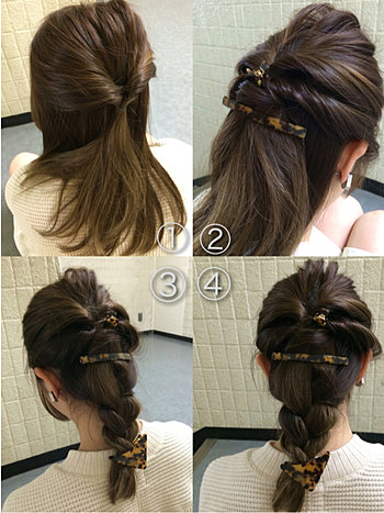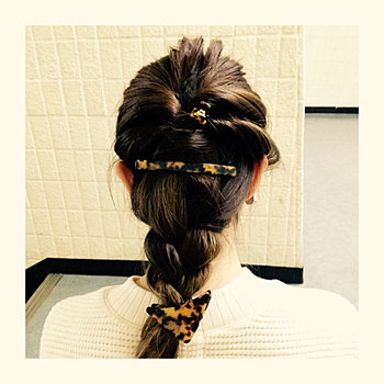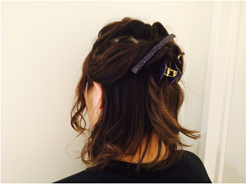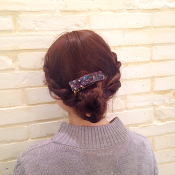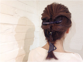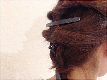 ② 両サイドからねじって、バレッタで止める