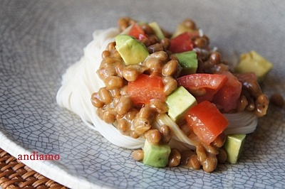 夏にするするっと食べたいアボカド納豆×麺