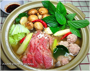 ■バジルハーブレモン鍋★牛肉と海老つみれ団子