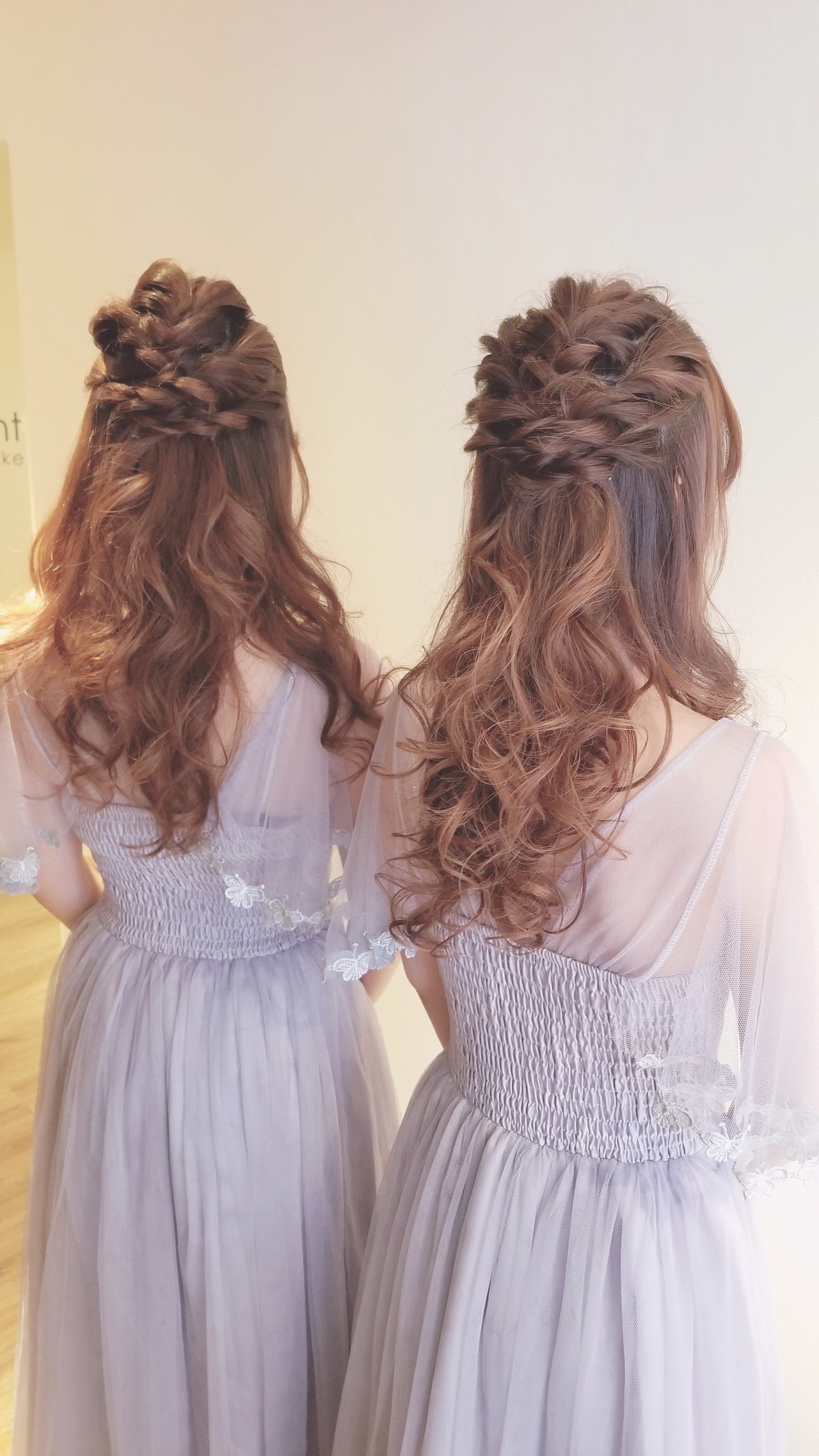 ブライズメイドはおそろヘアで可愛く♡編み込みハーフアップでガーリーにお目立ち!
